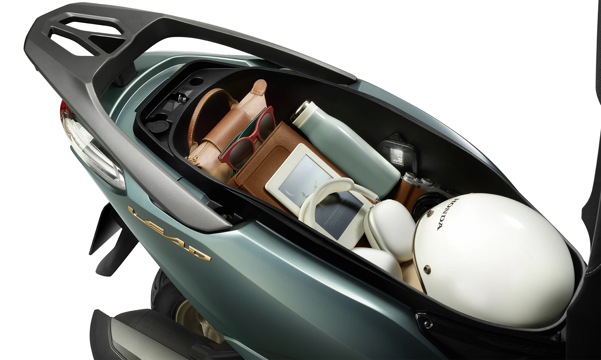 • Spacious under-seat storage – fits even a full-size helmet!